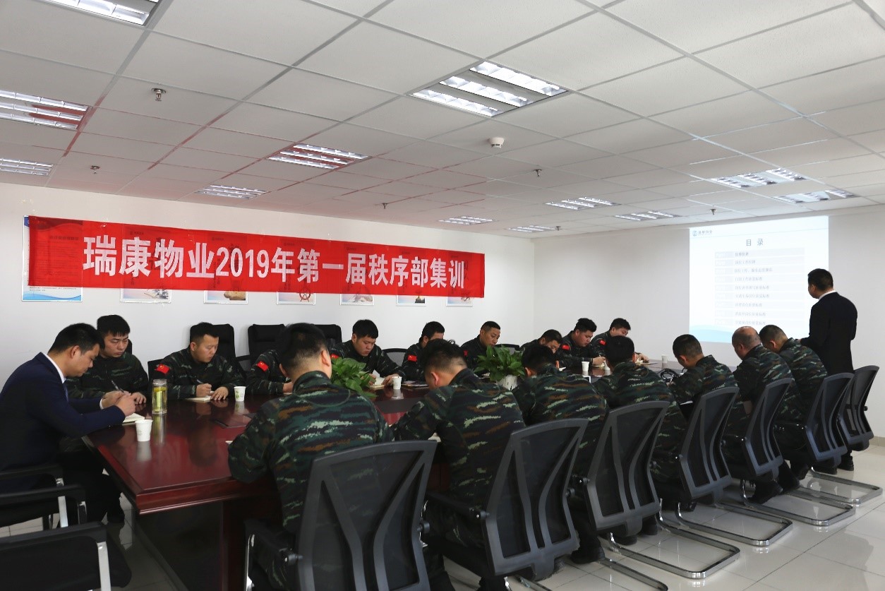 值此陽(yáng)春三月,萬(wàn)物復(fù)蘇,蓄勢(shì)待發(fā)的季節(jié),瑞康物業(yè)2019年第一屆秩序部集訓(xùn)班正式開班。本次集訓(xùn)是為期三天的脫產(chǎn)培訓(xùn),學(xué)員為瑞康物業(yè)各項(xiàng)目秩序部主管級(jí)人員,采用講師授課及軍事化訓(xùn)練相結(jié)合的方式,授課內(nèi)容涵蓋企業(yè)文化、從業(yè)人員基本素養(yǎng)、物業(yè)管理基礎(chǔ)知識(shí)、各項(xiàng)安全專業(yè)知識(shí)、各類突發(fā)事件應(yīng)急預(yù)案、現(xiàn)場(chǎng)管理品質(zhì)提升等。