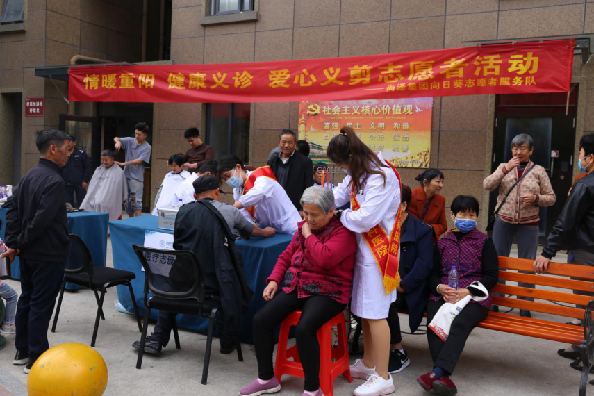 九九重陽(yáng)節(jié),濃濃敬老情。為了弘揚(yáng)中華民族傳統(tǒng)文化,增進(jìn)與業(yè)主間的黏合度,10月25日,在重陽(yáng)節(jié)來(lái)臨之際,尚澤集團(tuán)向日葵志愿者服務(wù)隊(duì)分別在尚澤大都會(huì)、百樂(lè)門(mén)項(xiàng)目開(kāi)展“健康義診、愛(ài)心義剪”活動(dòng),為老業(yè)主免費(fèi)檢查身體、義務(wù)理發(fā)。