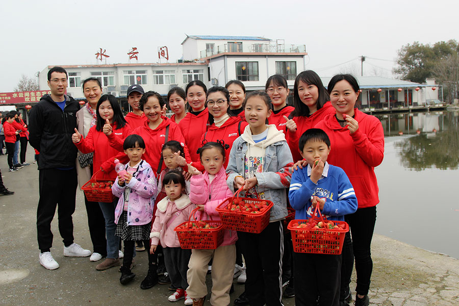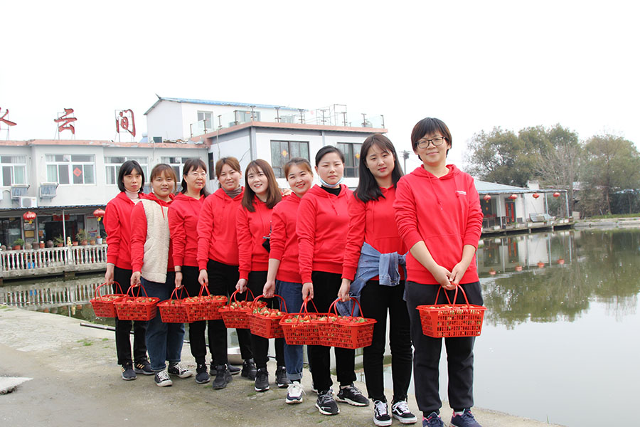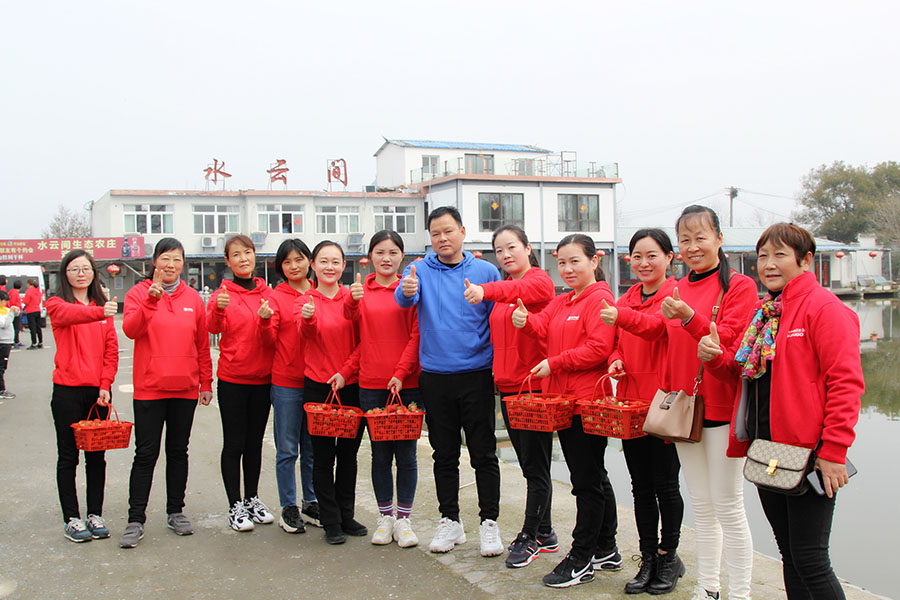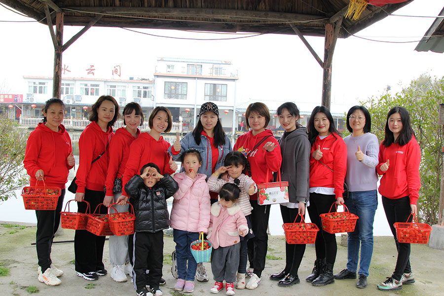 一路上,女同胞們歡聲笑語,孩子們喜笑顏開。剛抵達大圩草莓采摘基地,大家便按捺不住激動的心情,紛紛鉆進大棚里,感受“水果皇后”散發(fā)出的清香芬芳。有忙著與孩子一起體驗田園采摘的樂趣,也有忙著品嘗香甜可口的味道,還有忙著與鮮紅嬌嫩的草莓拍照留念,悠然自得,舒心愜意。小籃筐中紅艷艷的果實,讓所有人盡享滿載而歸的歡樂。經(jīng)營管理層領(lǐng)導(dǎo)有的參與到采摘活動中,還有的在池塘邊垂釣,其樂融融。中午,大家還品嘗了獨具特色的農(nóng)家宴,美味贊不絕口。返回途中,眾人臉上紛紛流露出意猶未盡的感覺。