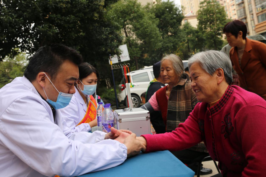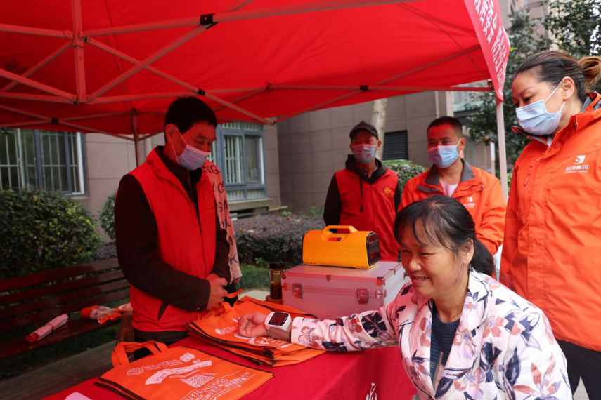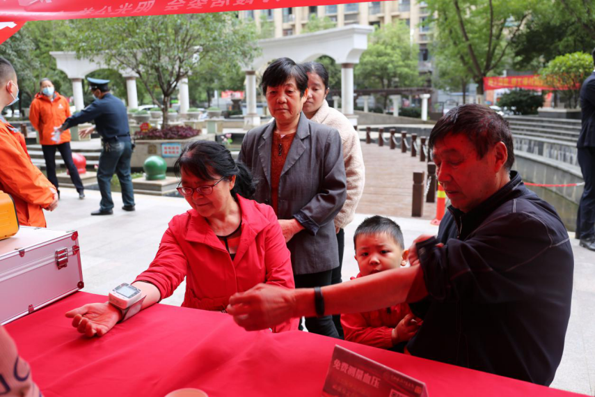 義診臺(tái)前,志愿者們熱情的接待每一位前來(lái)就診和咨詢的業(yè)主,醫(yī)護(hù)人員耐心的為他們答疑解惑,詳細(xì)講解常見(jiàn)病的預(yù)防診治注意事項(xiàng),并免費(fèi)為他們測(cè)量血壓、血脂、中醫(yī)把脈,讓業(yè)主們更多地了解自身身體狀況,提升衛(wèi)生防病意識(shí)。