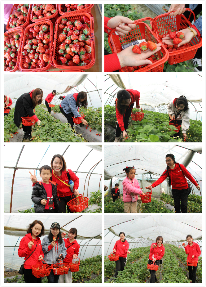 一路上,女同胞們歡聲笑語,孩子們喜笑顏開。剛抵達大圩草莓采摘基地,大家便按捺不住激動的心情,紛紛鉆進大棚里,感受“水果皇后”散發(fā)出的清香芬芳。有忙著與孩子一起體驗田園采摘的樂趣,也有忙著品嘗香甜可口的味道,還有忙著與鮮紅嬌嫩的草莓拍照留念,悠然自得,舒心愜意。小籃筐中紅艷艷的果實,讓所有人盡享滿載而歸的歡樂。經(jīng)營管理層領(lǐng)導(dǎo)有的參與到采摘活動中,還有的在池塘邊垂釣,其樂融融。中午,大家還品嘗了獨具特色的農(nóng)家宴,美味贊不絕口。返回途中,眾人臉上紛紛流露出意猶未盡的感覺。
