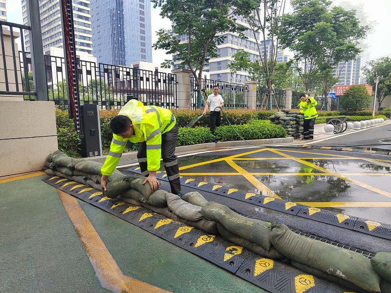 ①應(yīng)急演練:各物業(yè)服務(wù)中心根據(jù)項(xiàng)目實(shí)際情況制定防汛應(yīng)急預(yù)案并組織開展安全演練,模擬演練滲水險(xiǎn)情,封堵車庫坡道、抽排水、防汛物資搬運(yùn)等搶險(xiǎn)場景,以演代練,筑牢防線。