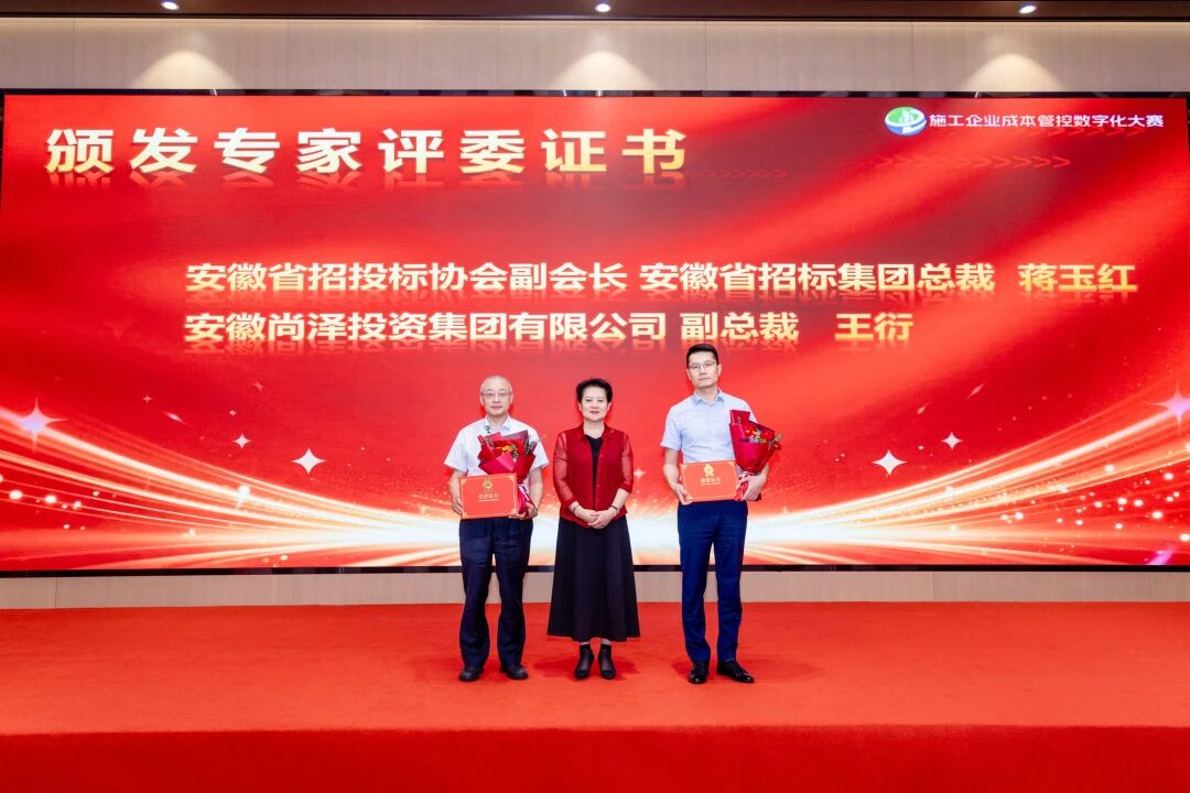 本次大賽采用異地混合評(píng)審機(jī)制,匯聚全國120余位專家,對(duì)1677份參賽案例進(jìn)行了嚴(yán)格、公正的評(píng)判。為感謝他們的卓越貢獻(xiàn),大會(huì)首先為專家評(píng)委頒布榮譽(yù)證書。在熱烈的掌聲中,安徽省招投標(biāo)協(xié)會(huì)副會(huì)長、安徽省招標(biāo)集團(tuán)總裁蔣玉紅,安徽尚澤投資集團(tuán)有限公司副總裁王衍上臺(tái)領(lǐng)取殊榮。