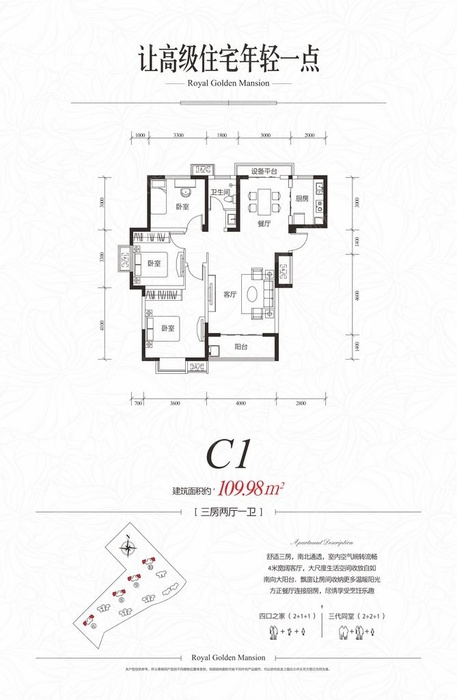 車位數(shù) :1146個 物業(yè)類型 :小高層 , 高層 , 塔樓 產(chǎn)權年限 :住宅70年 規(guī)劃戶數(shù) :1112戶 總建筑面積 :156552㎡ |